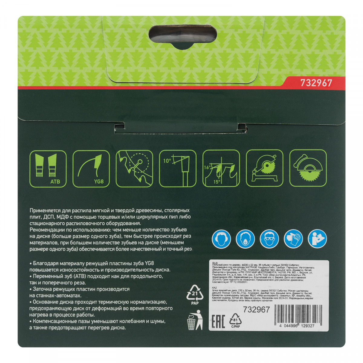 • Универсальность — зубья типа АТВ позволяют производить как продольный, так и поперечный рез.