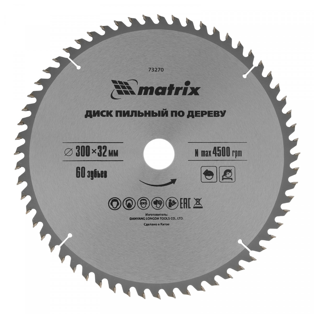 Пильный диск по дереву Matrix 73270 диаметром 300 х 32 мм, с 60 зубьями, — оснастка для циркулярных и торцовочных пил с соответствующим посадочным и внешним диаметром. Используется преимущественно для поперечного реза материалов из мягкой и твердой древесины, ДСП, ДВП, фанеры, столярных плит. Диск подходит для бытового и профессионального применения.