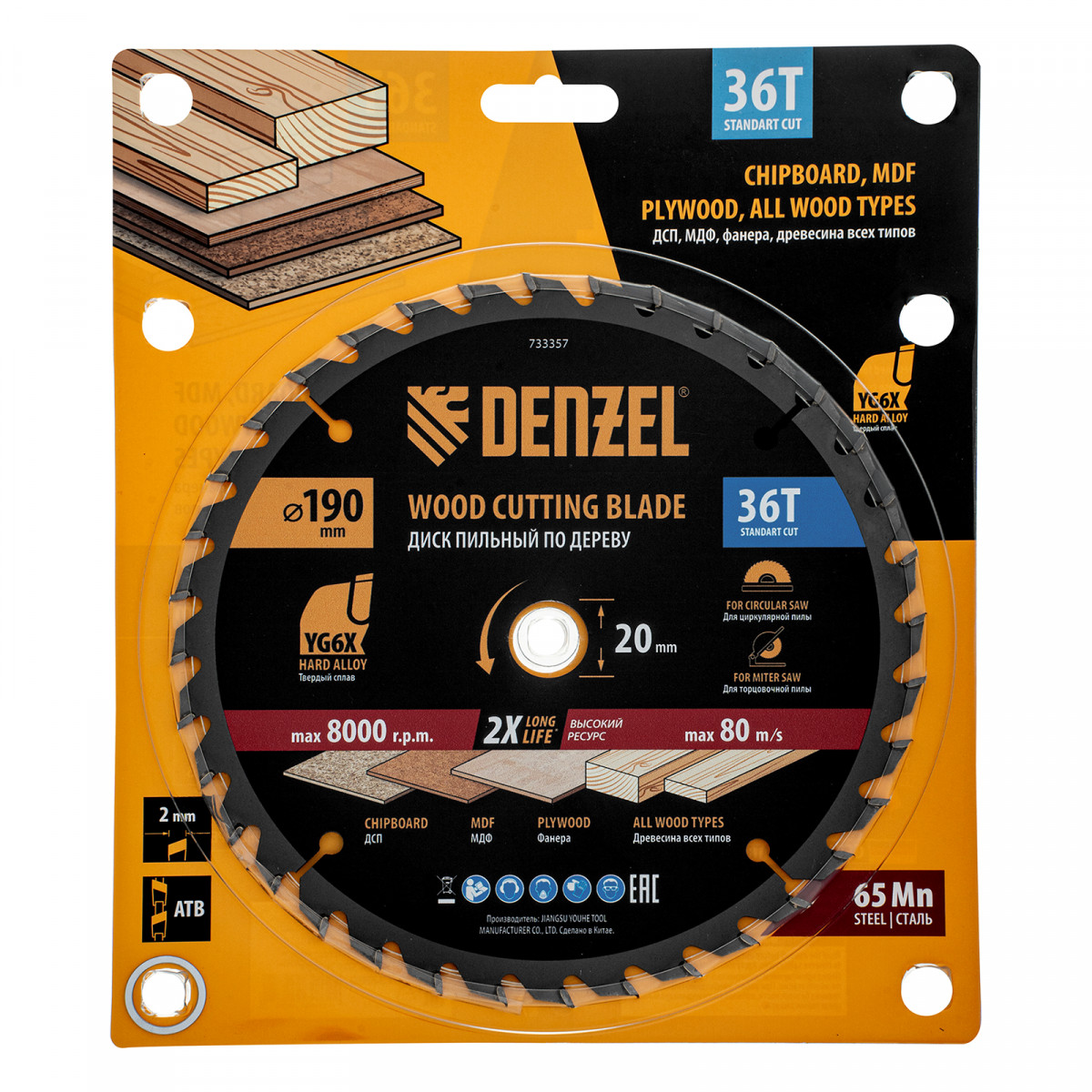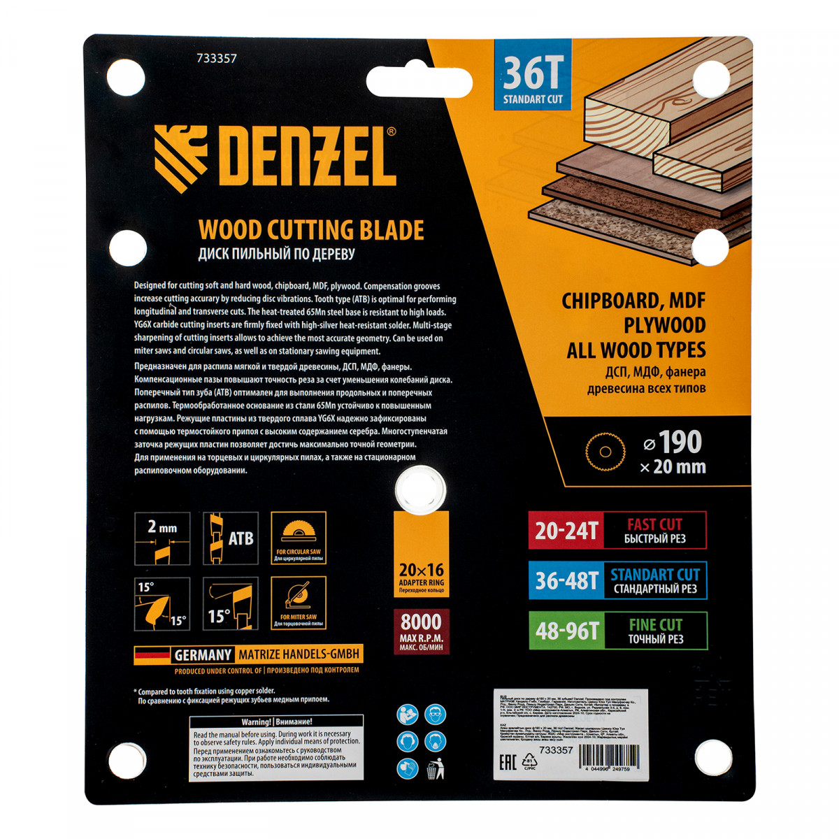 Пильный диск по дереву ф190 х 20 мм, 36 зубьев Denzel