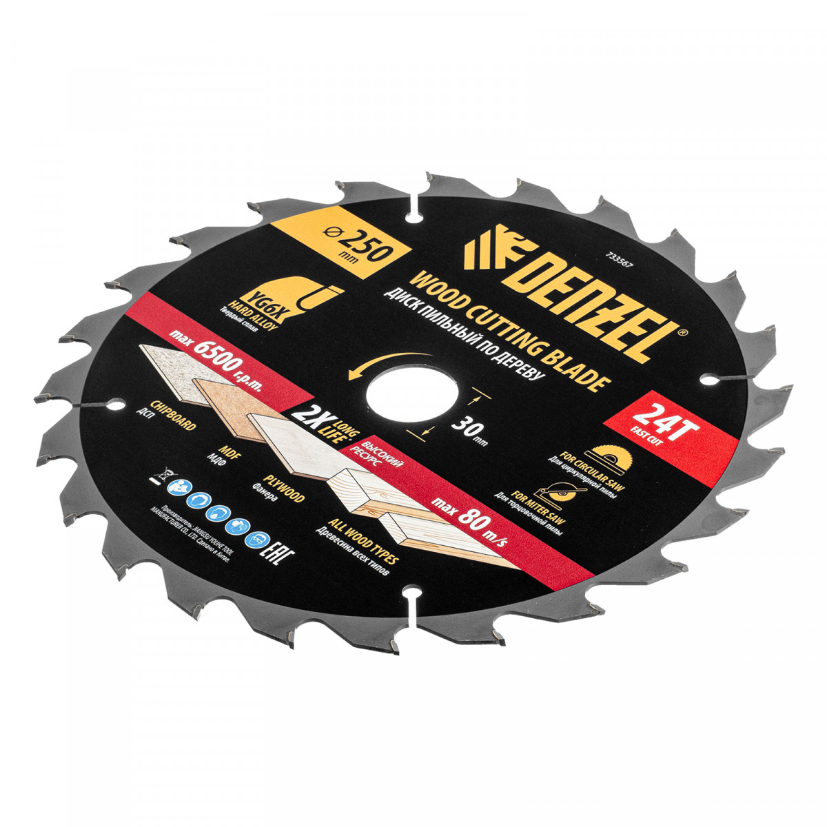 Пильный диск по дереву ф250 х 30 мм, 24 зубьев Denzel
