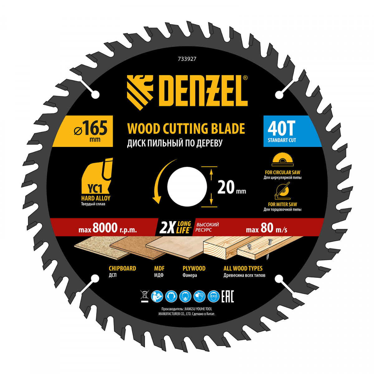 Пильный диск Denzel 733927 диаметром 165 x 20 мм, с 40 зубьями типа ATB, предназначен для продольного и поперечного распиливания древесины всех типов, в том числе с гвоздями и остатками бетона, а также ДСП, МДФ, фанеры. Режущие пластины из твердого сплава YC1, прошедшие многоступенчатую заточку, позволяют успешно справляться с прочными материалами. Диск устанавливается на циркулярную, торцовочную пилу или на распиловочный станок. В комплект поставки входит переходное кольцо 20/16 мм, позволяющее изменить посадочный диаметр при необходимости.