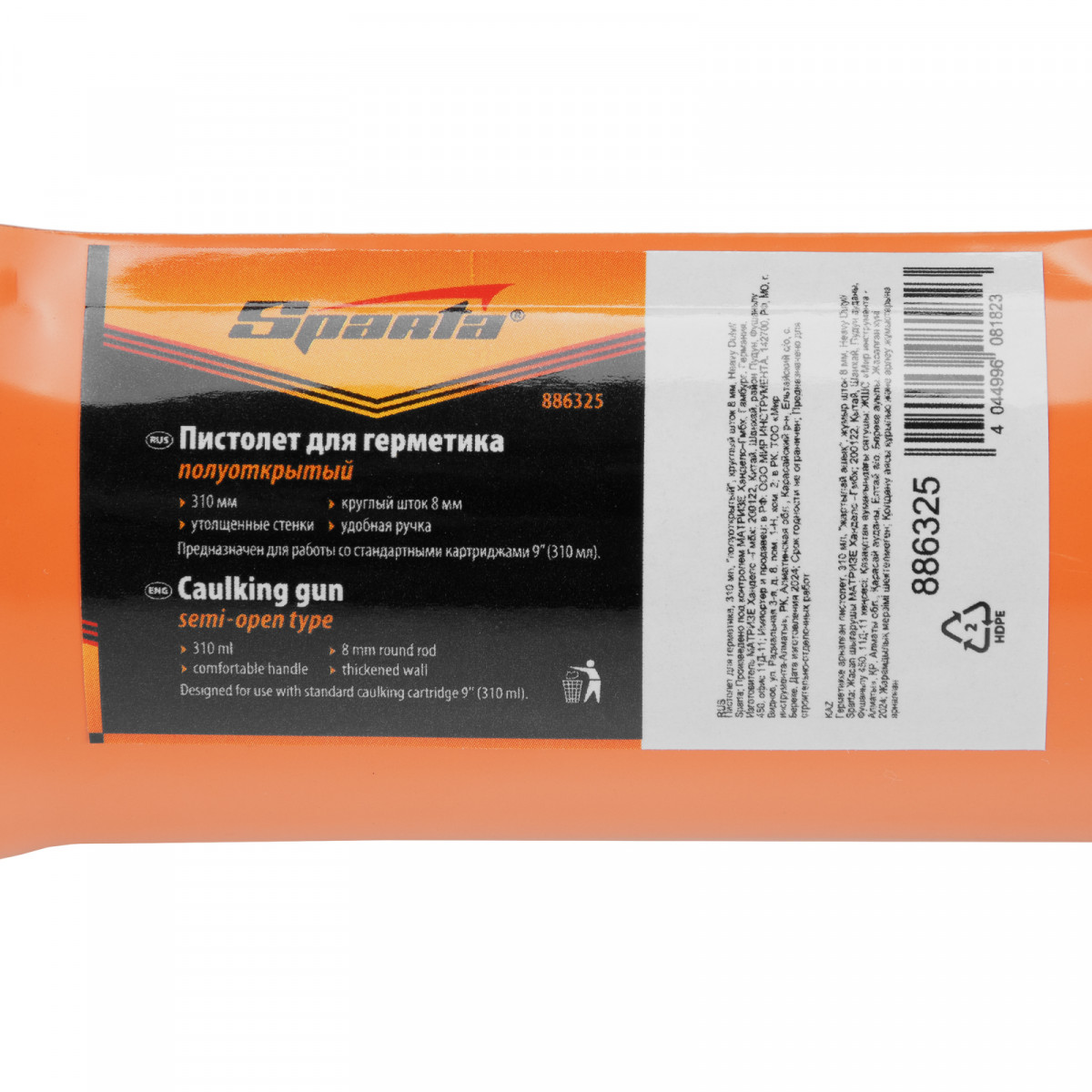 Пистолет для герметика Sparta Heavy Duty 886325 полуоткрытого типа, с круглым штоком диаметром 8 мм, совместим с тубами емкостью 310 мл и позволяет точно дозировать и равномерно наносить требуемое количество состава. Усиленный ребрами жесткости корпус не перекашивается, ход штока остается плавным. Благодаря функции защиты от протекания герметик не расходуется впустую. Инструмент используют для соединения деталей, заполнения пустот и герметизации швов. Будет полезен строителям, сантехникам, а также пригодится в быту.