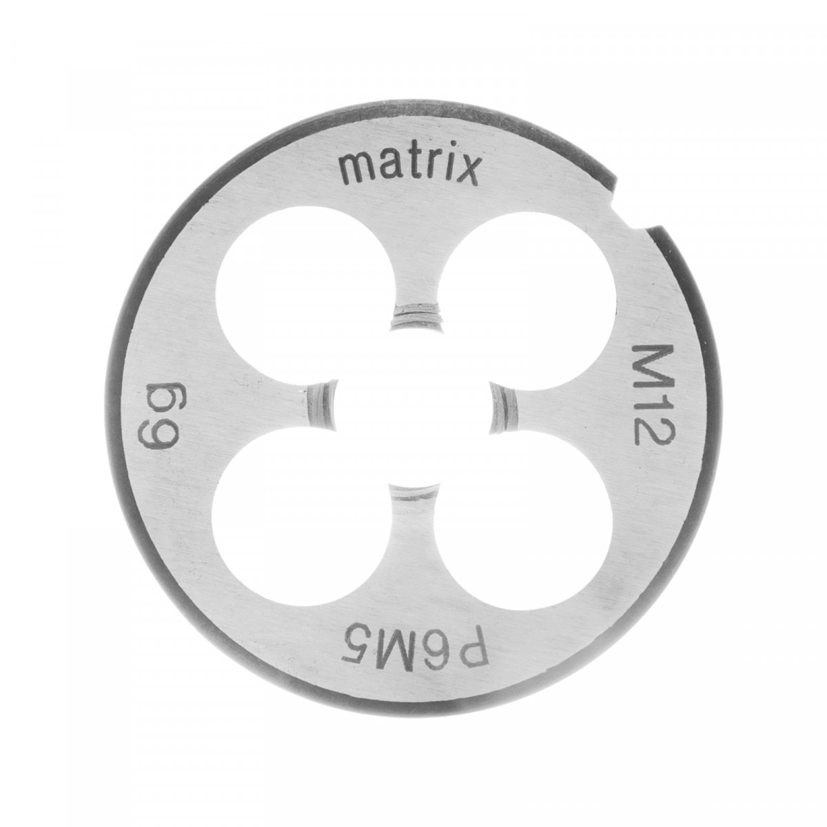 Плашка Matrix 77096 типоразмера М12 х 1,75 мм, из стали HSS, — резьбонарезной инструмент, предназначенный для восстановления старой или создания новой внешней метрической резьбы на металлических деталях. Для эксплуатации плашки не требуются особые навыки, что позволяет выполнять слесарные и монтажные работы в домашних условиях. Цельный корпус обеспечивает жесткое сцепление с деталью для получения высококачественной резьбы.
