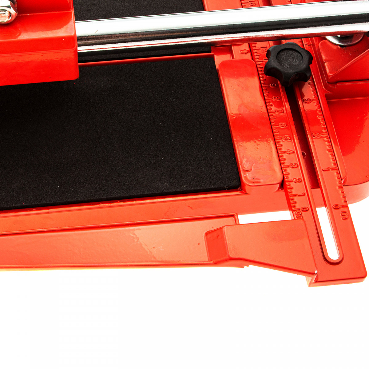 • Устойчивое основание и неподвижность плитки — плиткорез снабжен цельнолитой станиной из алюминиево-магниевого сплава с обрезиненной поверхностью, а также мягкими амортизирующими накладками.