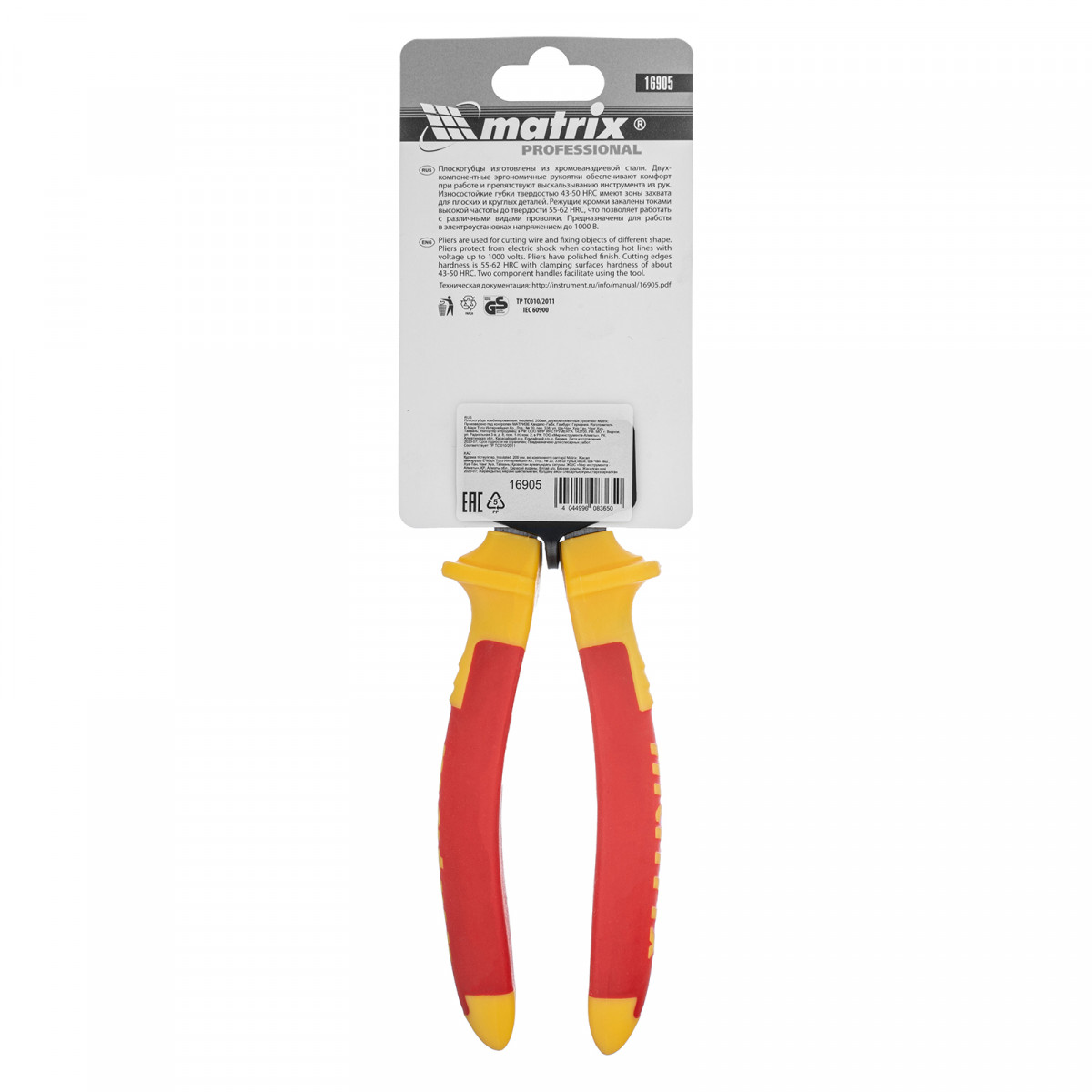 Плоскогубцы комбинированные Insulated, 200 мм, двухкомпонентные рукоятки Matrix Professional