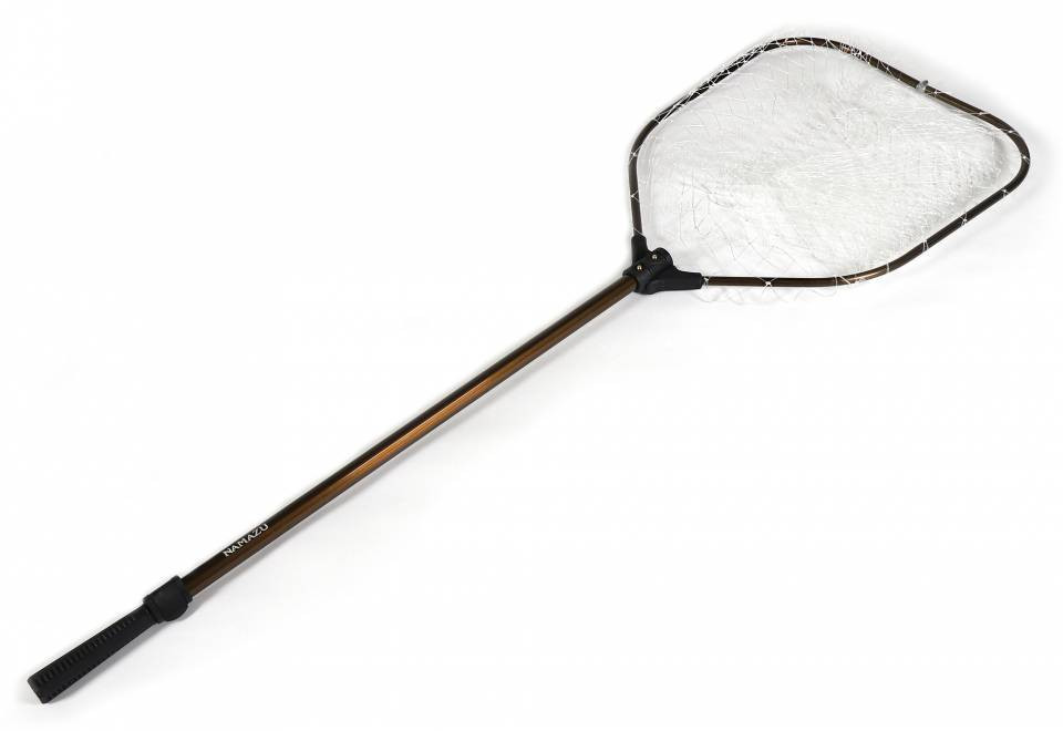 Подсачек складной телескопический Namazu квадратный с нейлоновой сеткой изготовлен по высоким стандартам качества из современного алюминиевого сплава и высокопрочного пластика, что гарантирует долгий ресурс эксплуатации. Сетка подсачеков изготовлена из современного нейлона не подверженного гниению и растяжению. Благодаря жесткости материала сетки в ней не запутываются крючки приманок, что весьма удобно во время рыбной ловли.