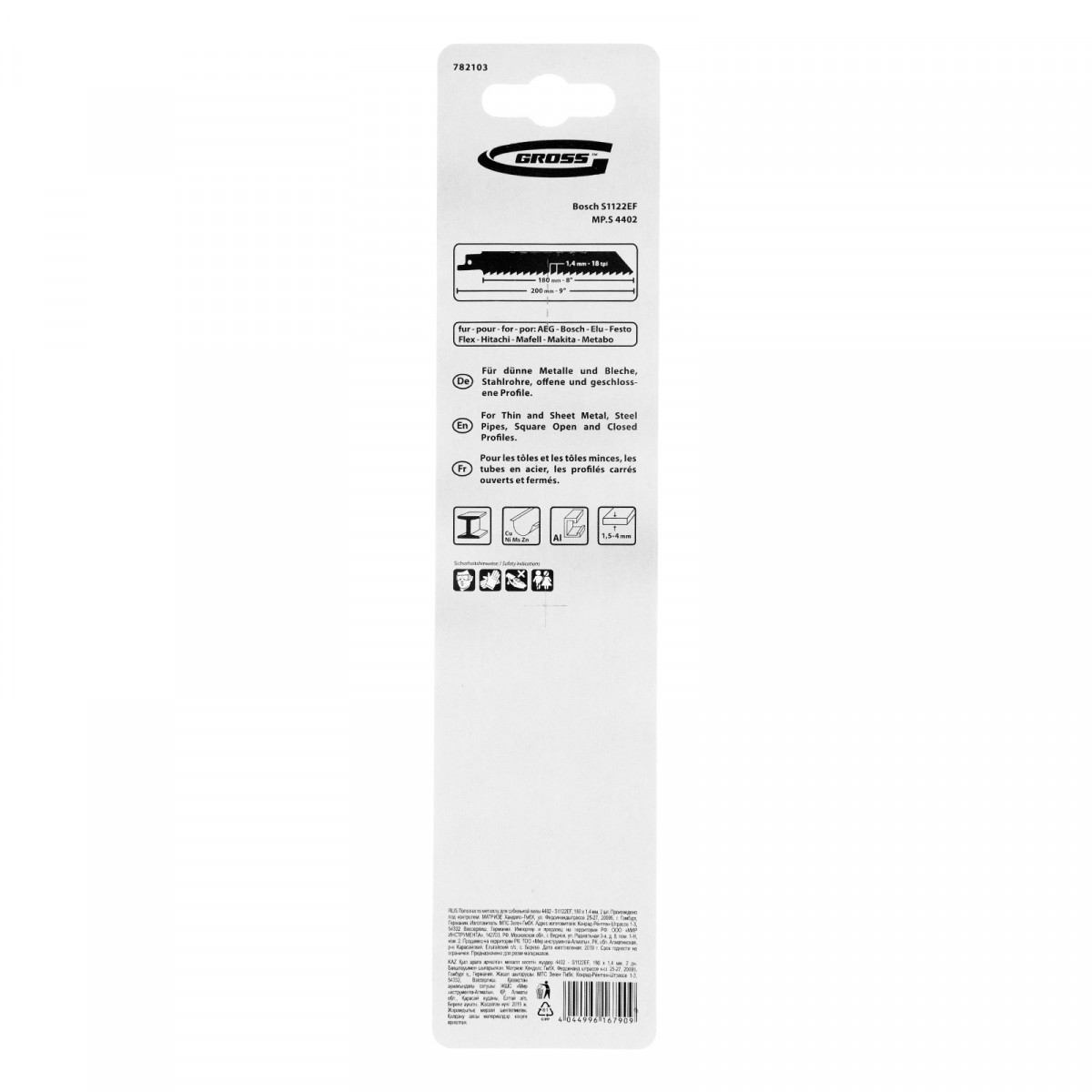 Полотна по металлу для сабельной пилы 4402 - S1122EF, 180 x 1.4 мм, 2 шт. Gross