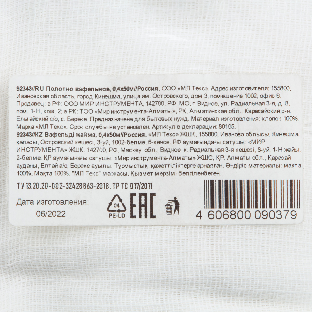 Вафельное полотно 92342 размером 0,4 х 50 м хорошо впитывает влагу и эффективно удаляет загрязнения. Может использоваться во время строительно-монтажных работ, выполнения ремонта различных механизмов, изготовления стекол и зеркал, обтирания оргтехники, автомобильных деталей и поверхностей автотранспортных средств. Пригодится в клининговых компаниях для уборки помещений, а также в медицинской индустрии, общественных учреждениях и сфере общепита.