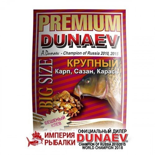 Прикормка для карпа с крупной фракцией Премиум Дунаев | Premium DUNAEV - это крупнофракционная смесь с более крупной фракцией, рассчитанная на ловлю карпа. Фракция помола 0,5-3 см. Встречаются кусочки бисквитов до 3-4 см. Обладает сильной клейкостью и практически не создает мути в точке ловли.