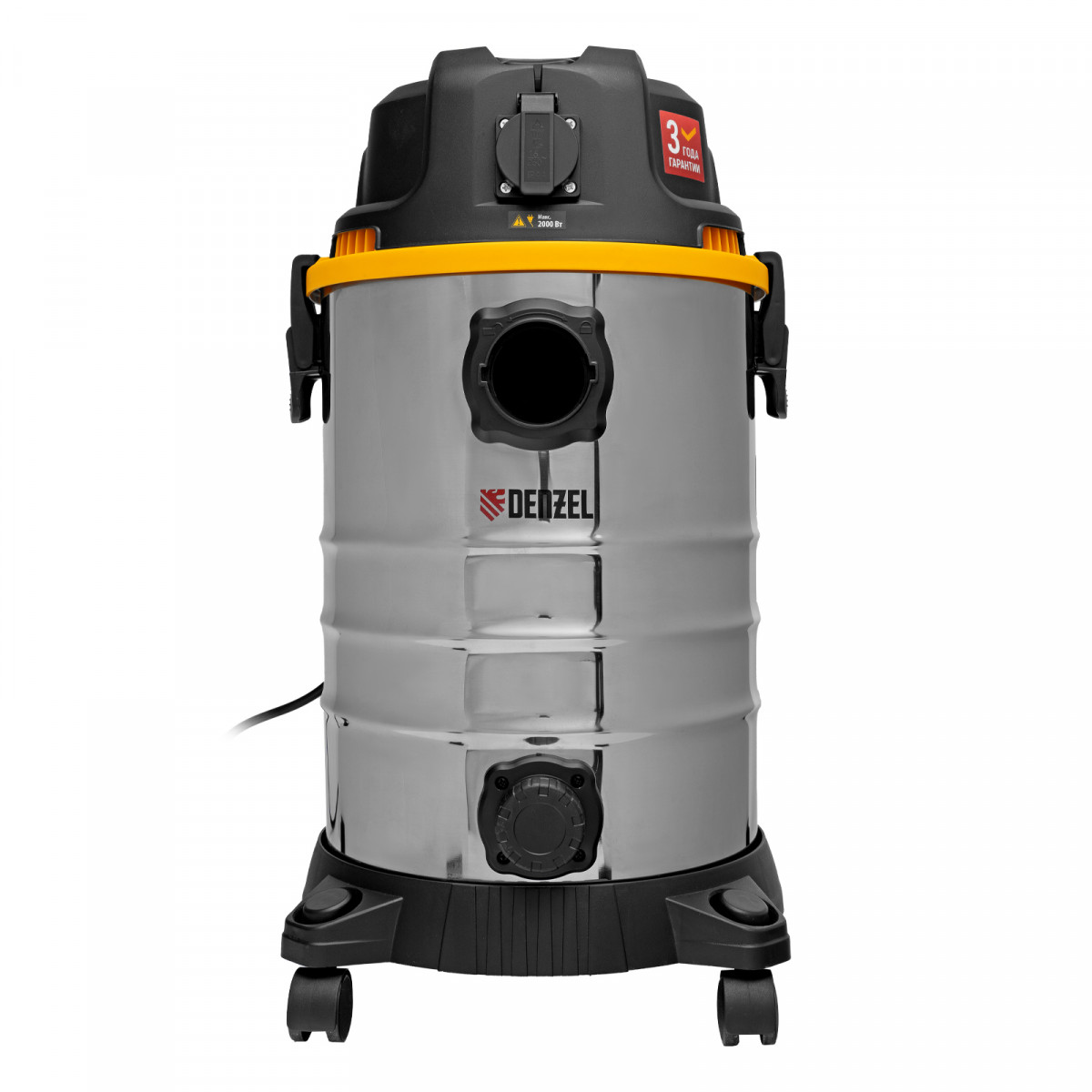 Пылесос строительный RVC30, 1400 Вт, бак 30 л, шланг 3 м, розетка с автосинхр. Denzel