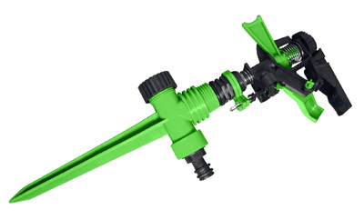 Имеет двухсторонний выход для соединения как к шлангу так и к дополнительному разбрызгивателю, что позволит увеличить площадь полива и не придется переносить прибор каждый раз на новое место.