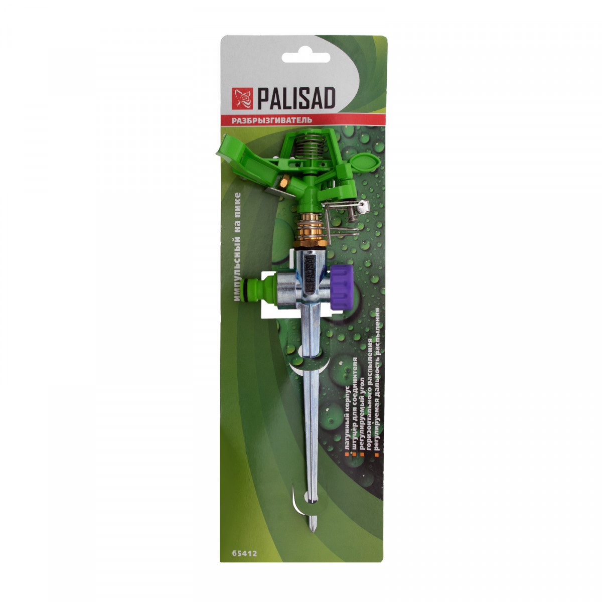 Разбрызгиватель латунный, импульсный, с регулировкой угла горизонт распыления до 26 м Palisad