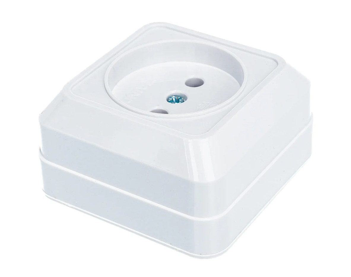 Розетка без заземления, белая - простое в установке электротехническое устройство накладного типа.