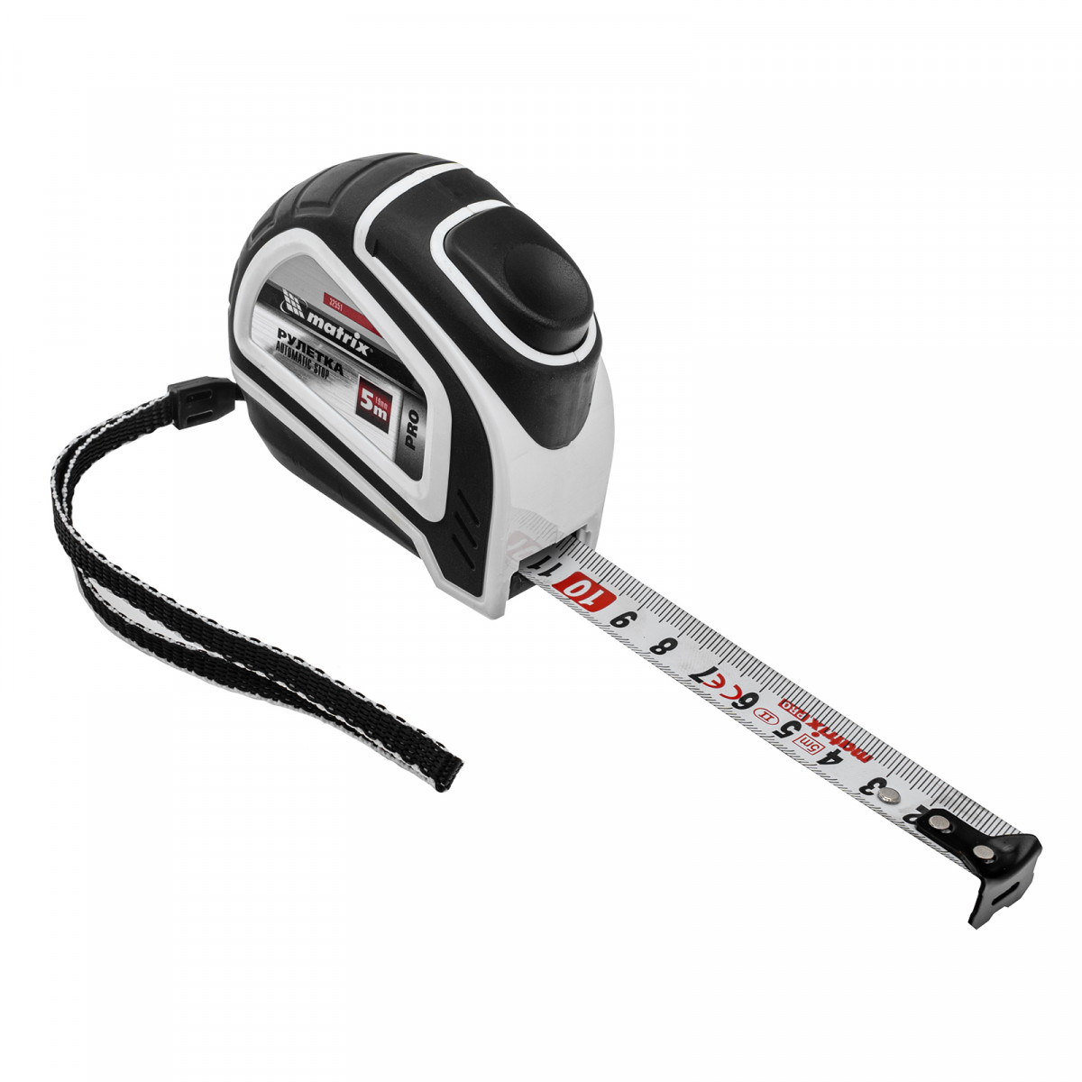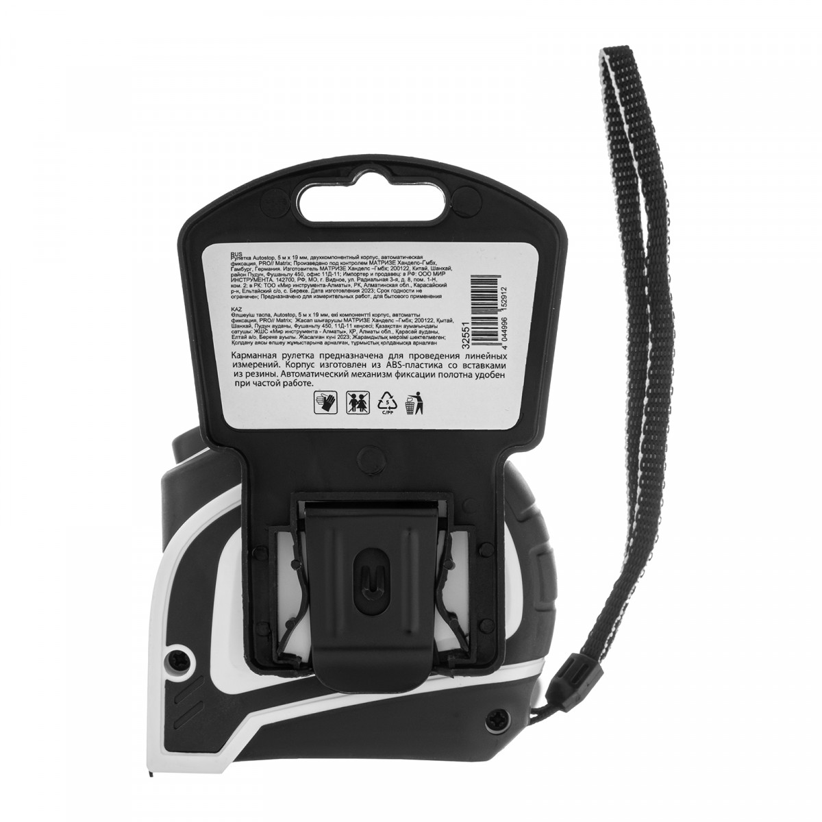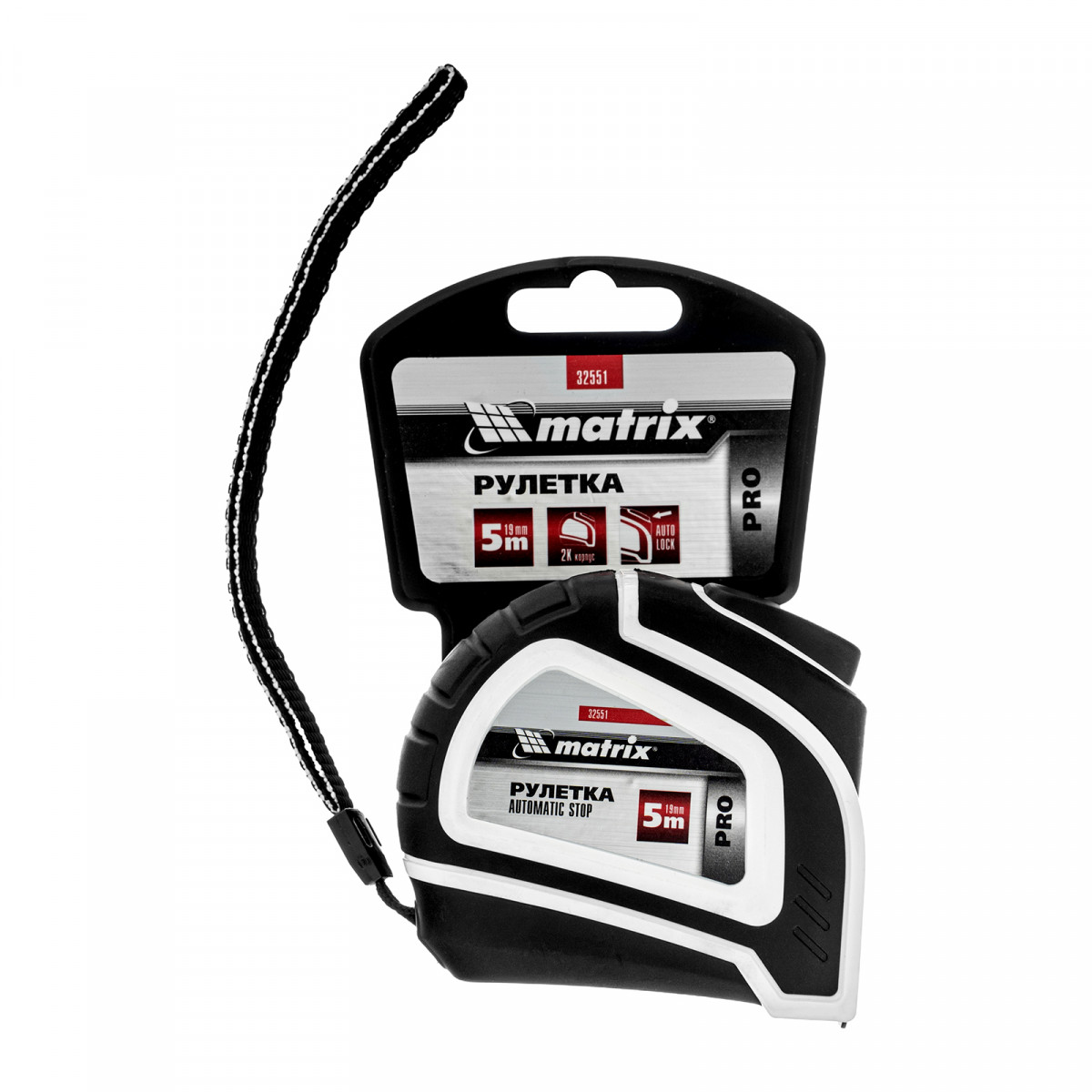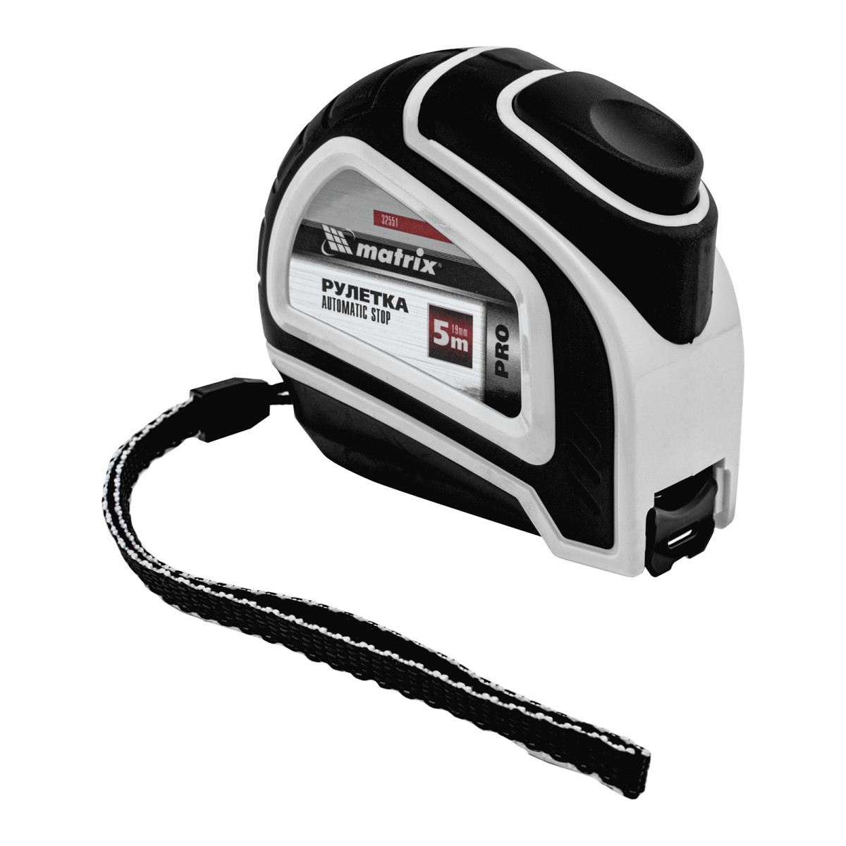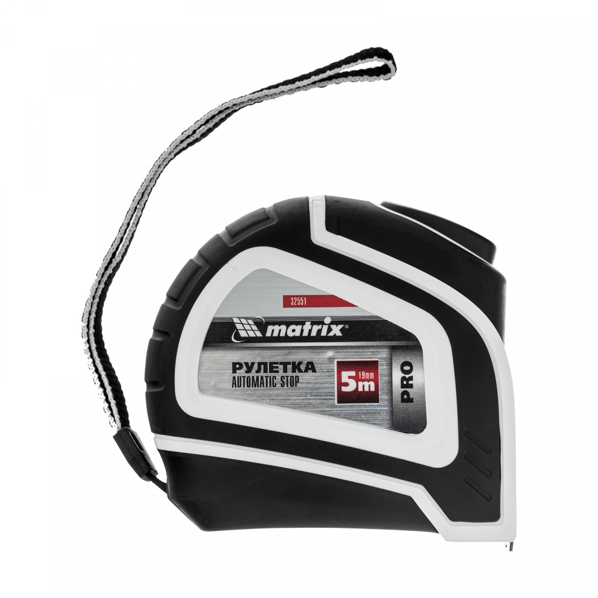 Рулетка Autostop,5 м х 19 мм,двухкомпонентный корпус,автоматическая фиксация,Pro Matrix