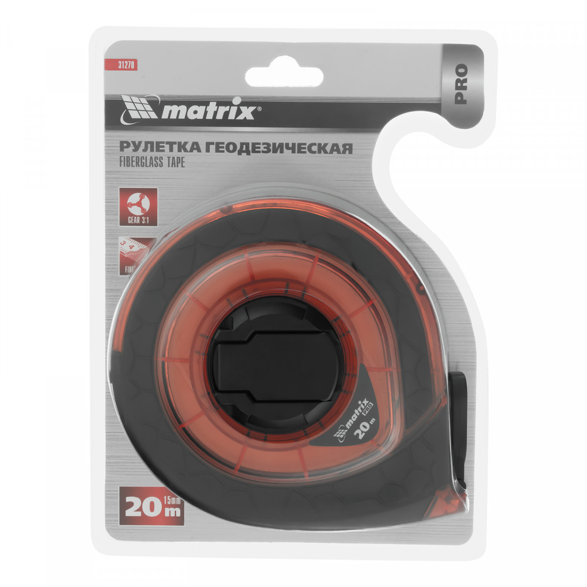 Рулетка геодезическая 20 м х 15 мм, закрытый корпус, фибергласовая лента, двусторонняя шкала, Pro Matrix