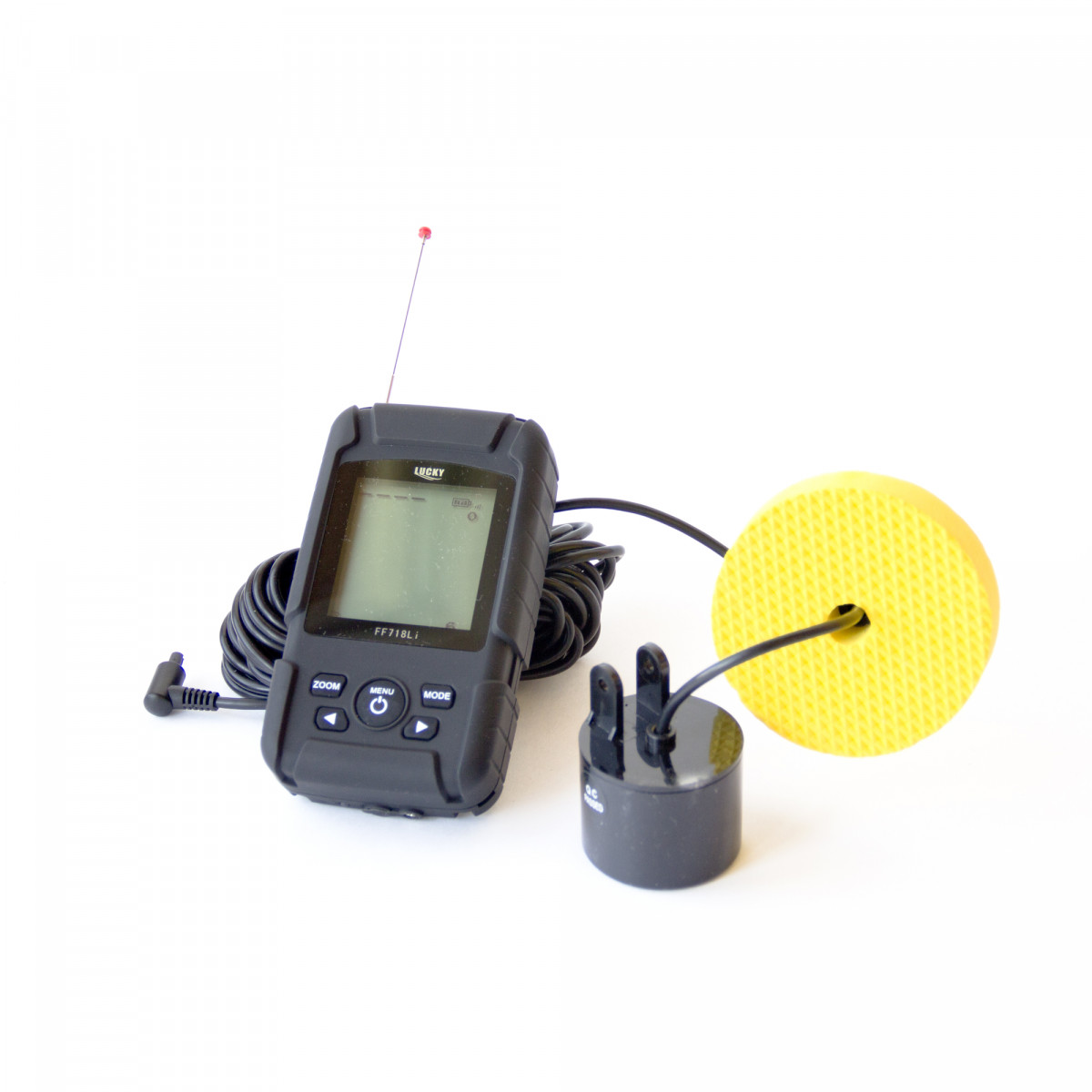 Портативный эхолот Lucky FF718LiDT имеет монохромный ЖК дисплей размером 41 х 48 мм и двухлучевой трансдьюсер для рыбалки с лодки  в комплекте. Классический двухлучевой проводной датчик для зимней рыбалки или ловли с лодки работает на частотах 83/200 кГц с углами охвата 20 и 60 градусов. В комплект с эхолотом входит фирменный кейс, который позволяет удобно хранить и транспортировать эхолот со всеми аксессуарами к нему. Корпус эхолота имеет прорезиненную оболочку, что позволяет Вам рыбачить в любую погоду. Доступен в комплектации Ice с неопреновым чехлом датчика эхолота для зимней рыбалки.