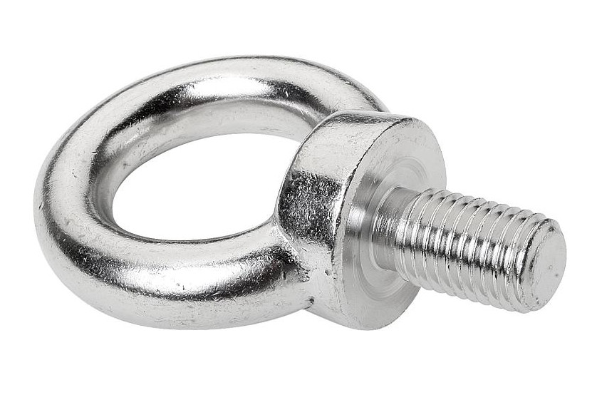 Рым-болт DIN 580 (такелажная точка захвата) из нержавеющей стали позволяет надежно закрепить тяжелые грузы для подъема или удержания навесу. Резьбовой частью он вкручивается в болтовое отверстие конструкции, а в кольцо продевается крюк или трос грузоподъемного механизма. В месте сочленения кольцевой головки и шпильки имеется утолщение для повышения прочности крепления.