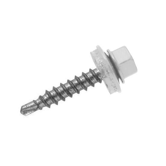 Саморез головка шестигранная с буртом. Окрашенные кровельные саморезы применяются для сквозного монтажа окрашенных кровельных материалов, а так же любых других к дервянным и металлическим основаниям. Резьба редкая. Покрытие: белый цинк, дополнительная окраска в цвета.