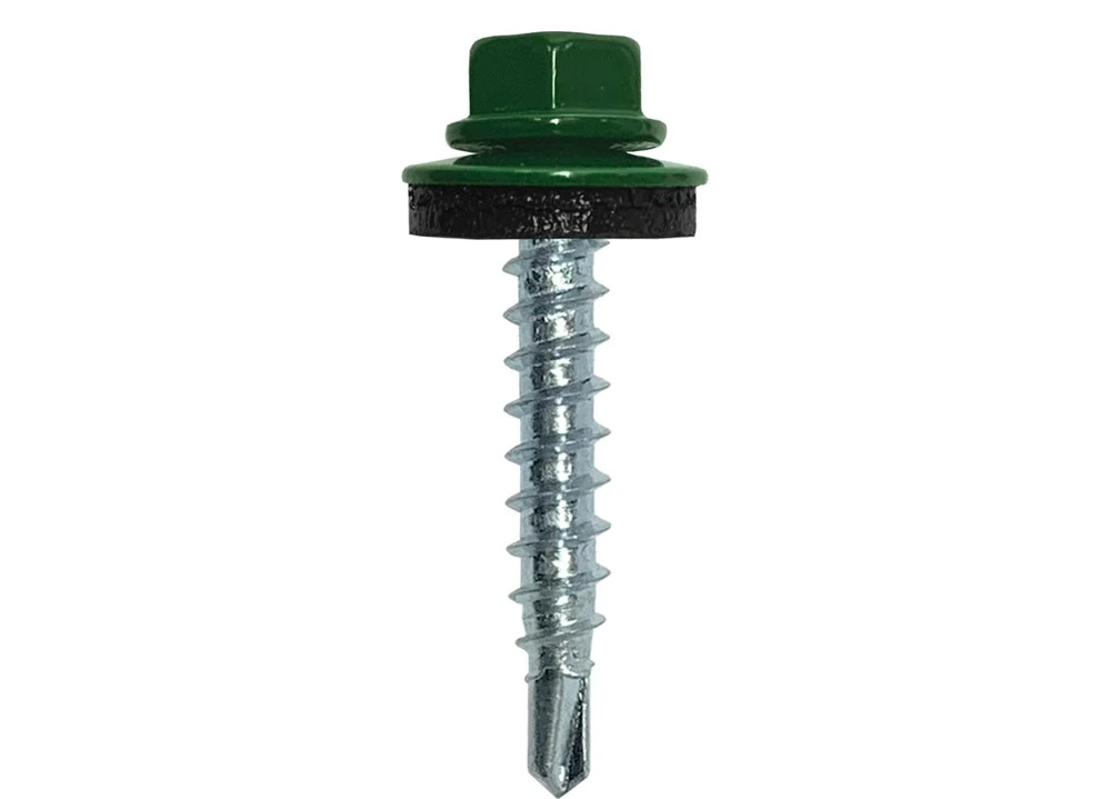Используется при монтаже профнастила и металлочерепицы к конструкциям из металла или древесины. Имеет шестигранную головку с шайбой и прокладку EPDM из синтетического каучука.