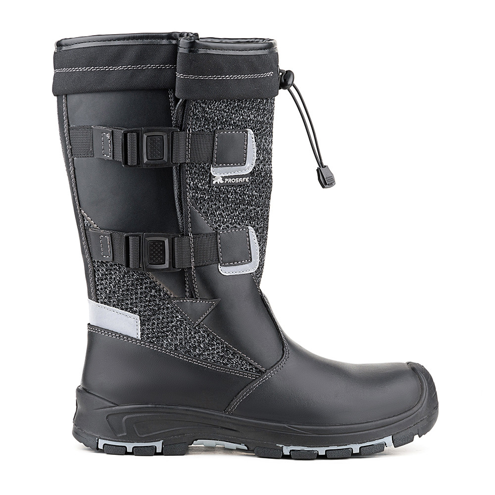 Сапоги Prosafe серии profi изготовлены из натуральной кожи в комбинации с текстилем на мембране. Подкладка сапог и вкладная стелька выполнена из шерстяного меха, с содержанием натуральной овечьей шерсти- 50% и плотностью 900 гр. Голенище регулируется за счет мягкого клапана и фиксируется на ноге с помощью двух застежек и эластичного шнурка с фиксатором в верхей части. Светоотражающие элементы повышают видимость работников в темное время суток и на неосвещенной территории. Подошва- двухслойная, маслобензостойкая, литьевого метода крепления. Промежуточный слой изготовлен из ПУ с внутренней амортизирующей вставкой в пяточной части подошвы, способной гасить ударные нагрузки при ходьбе. Ходовой слой изготовлен из износостойкого, термостойкого нитрила, который способен защитить стопу от кратковременного контакта подошвы с нагретой поверхностью до 300°С. Композитный подносок, ударной прочностью 200Дж, обеспечивает защиту пальцев стопы. Глубина протектора ходового слоя подошвы составляет 3,5 мм.