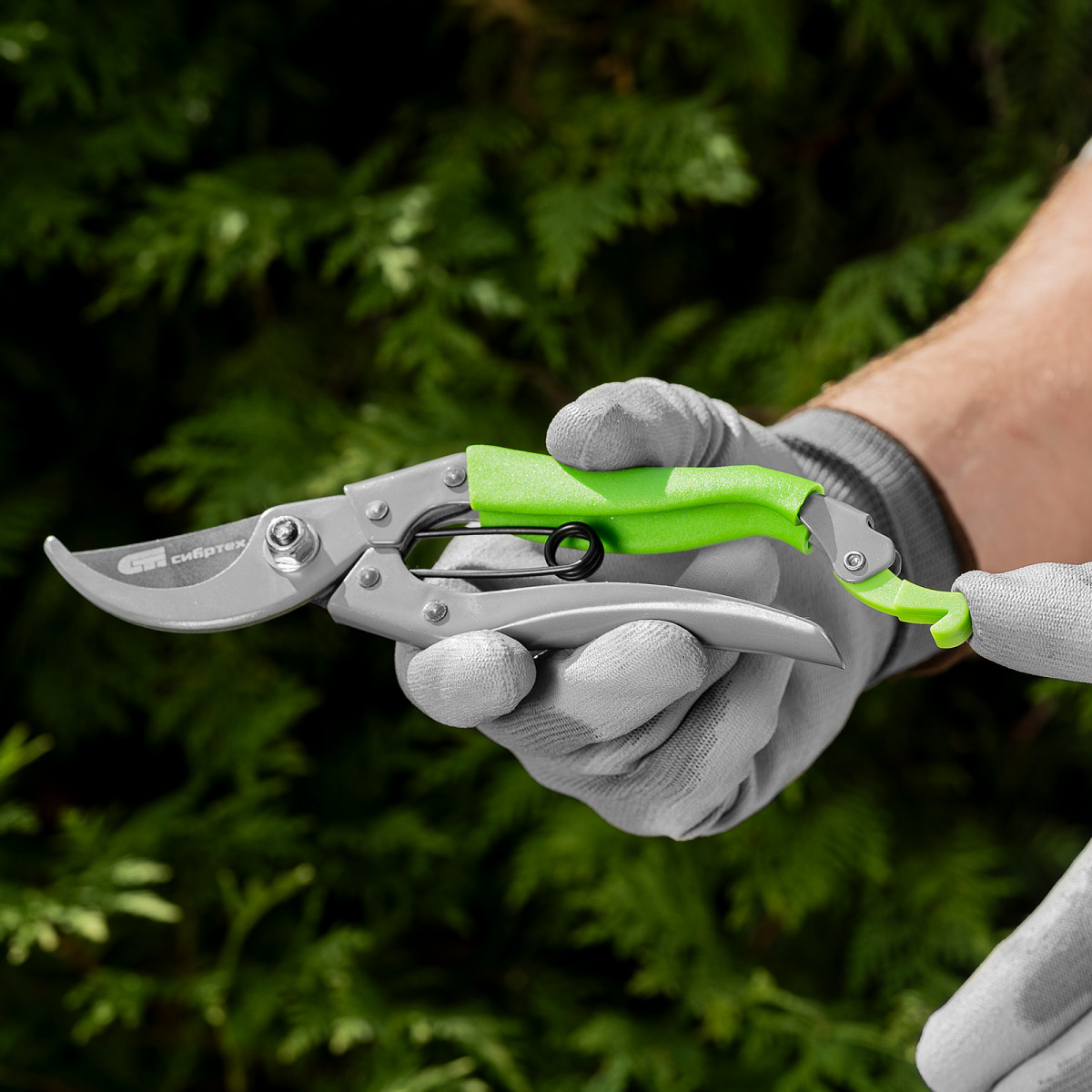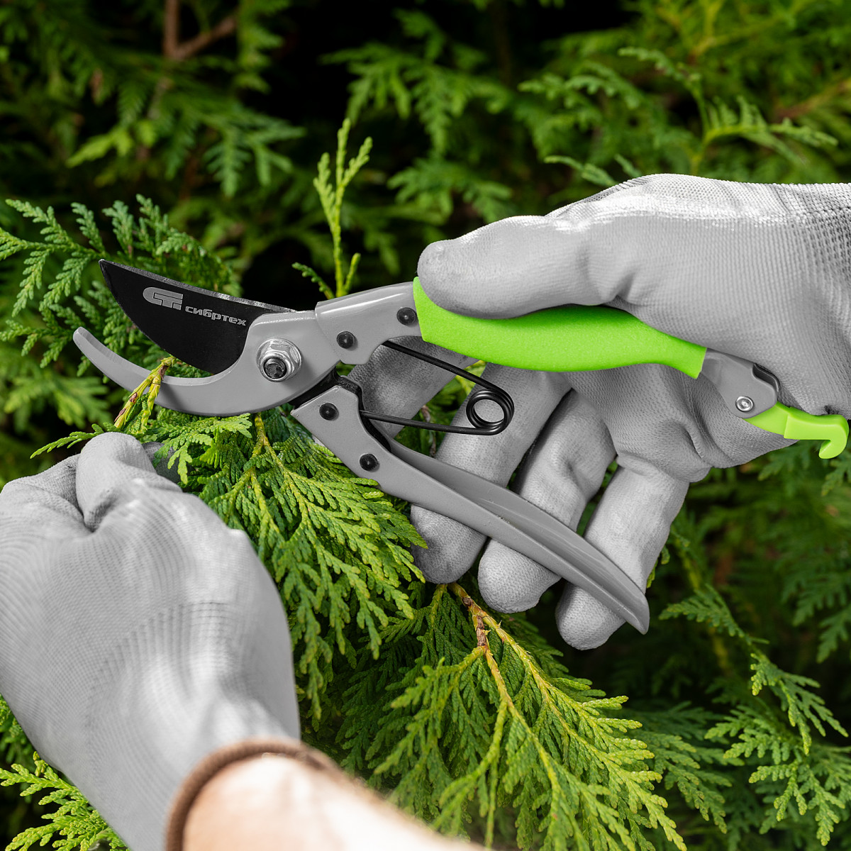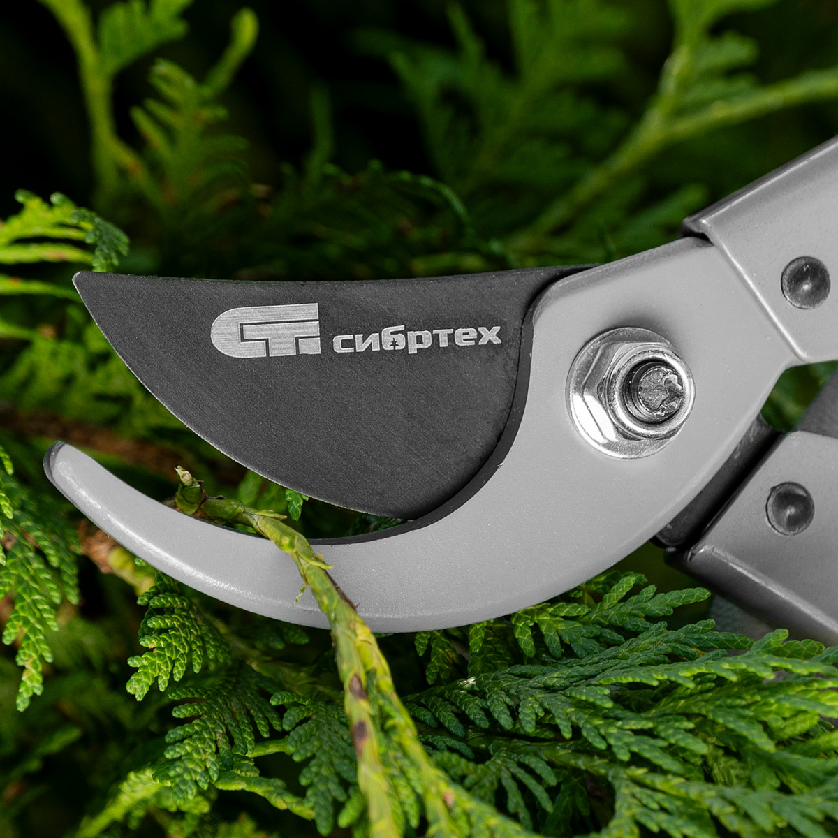 Секатор прямого реза Сибртех 60495 длиной 200 мм, с металлическим рукоятками, верхняя в ПВХ-оболочке, используется для ухода за садом и огородом. Предназначен для обрезания живых веток диаметром до 15 мм. Лезвие с прецизионной заточкой двигается в плоскости, параллельной опорному лезвию, чисто обрезая ветки и нанося минимальные повреждения растениям. Плотность примыкания лезвий регулируется — для этого предусмотрен винт.
