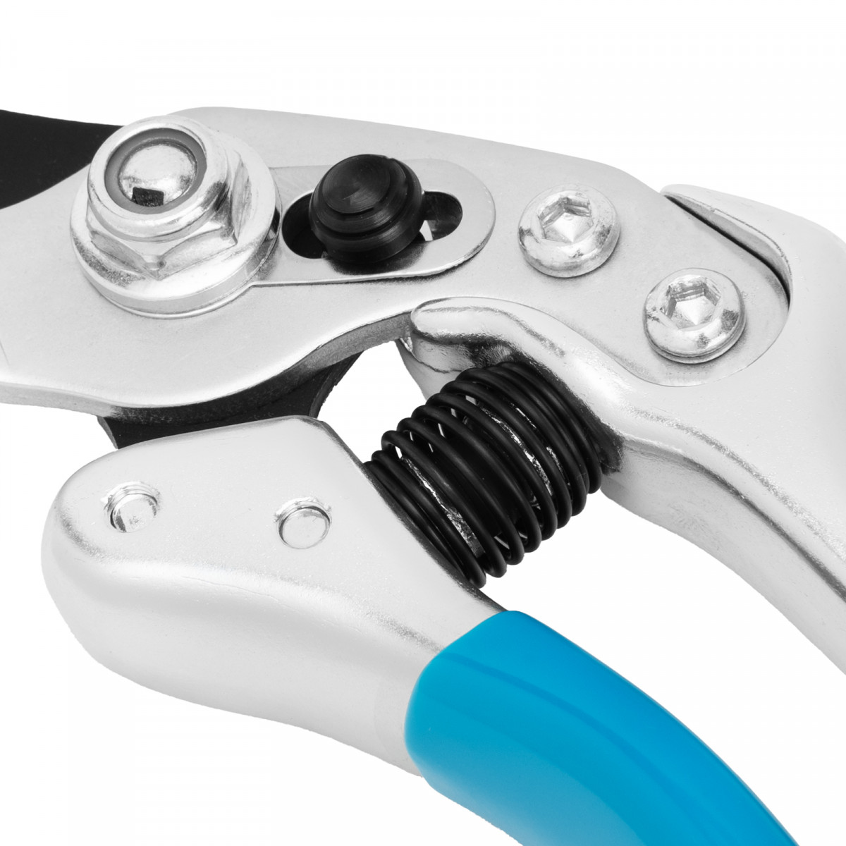 - Безопасное хранение и транспортировка — удобный фиксатор крепко удерживает лезвия сомкнутыми.
