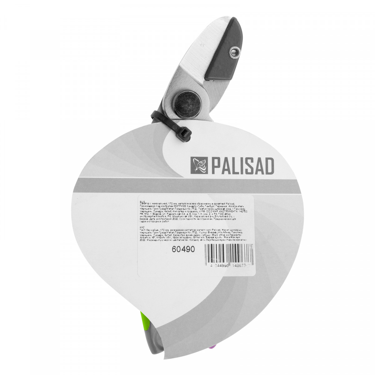 Секатор с наковальней, 170 мм, металлические обрезиненные рукоятки, Palisad