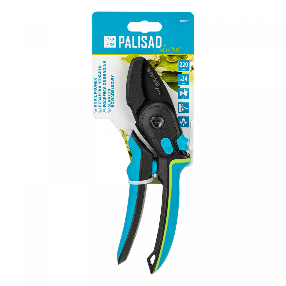 Секатор с наковальней, 220 мм, регулировка захвата, трехкомпонентные рукоятки, LUXE Palisad