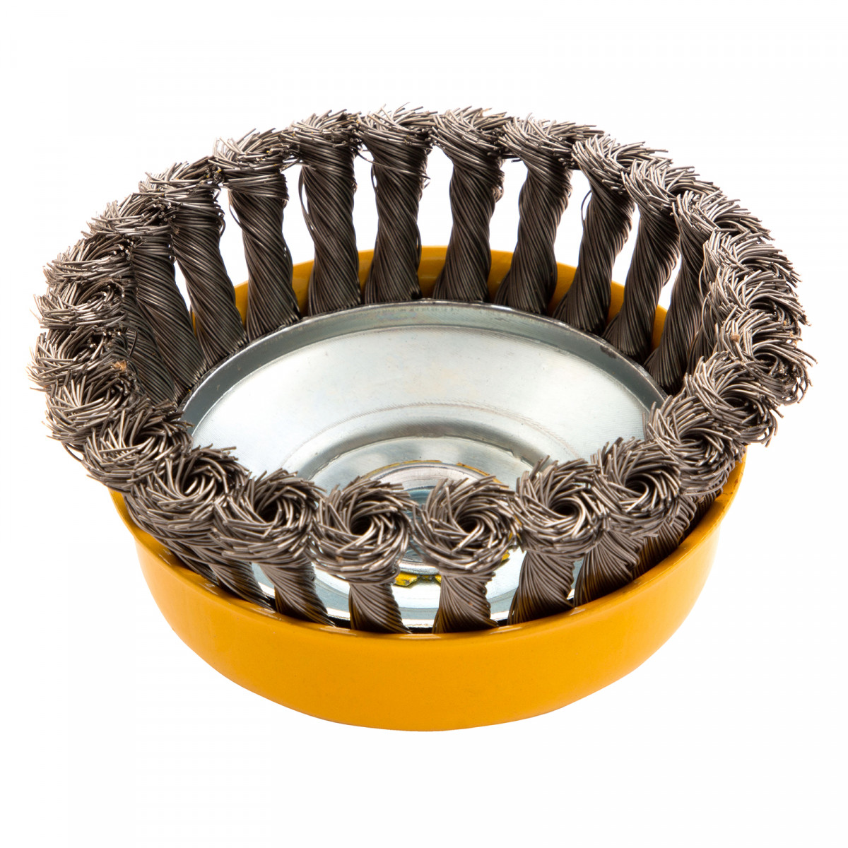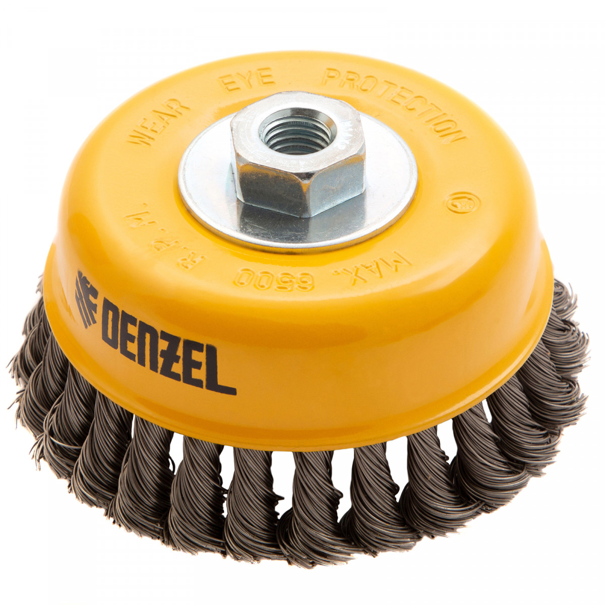 Щетка для УШМ, 125 мм, "Чашка", крученая нержавеющая проволока 0.5 мм, М14 Denzel