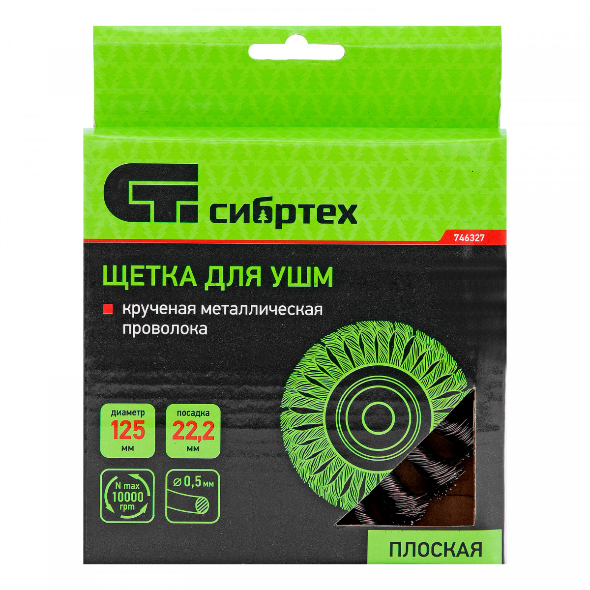 Плоская щетка Сибртех 746327 диаметром 125 мм и посадкой 22,2 мм, с щетиной из крученой проволоки толщиной 0,5 мм, устанавливается на вал УШМ, поддерживающей скорость вращения не более 10000 об/мин. Эффективно удаляет загрязнения, толстый слой ржавчины и лакокрасочных материалов с поверхностей, поэтому используется для проведения грубой (черновой) обработки. Плоской щеткой удобно очищать труднодоступные места, в том числе углы и изгибы.