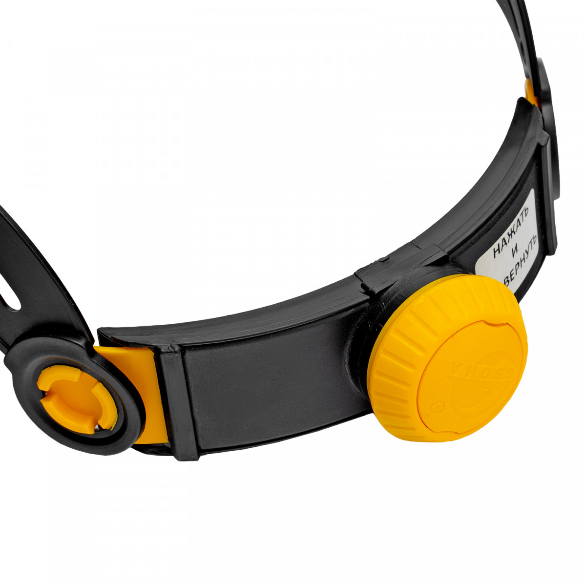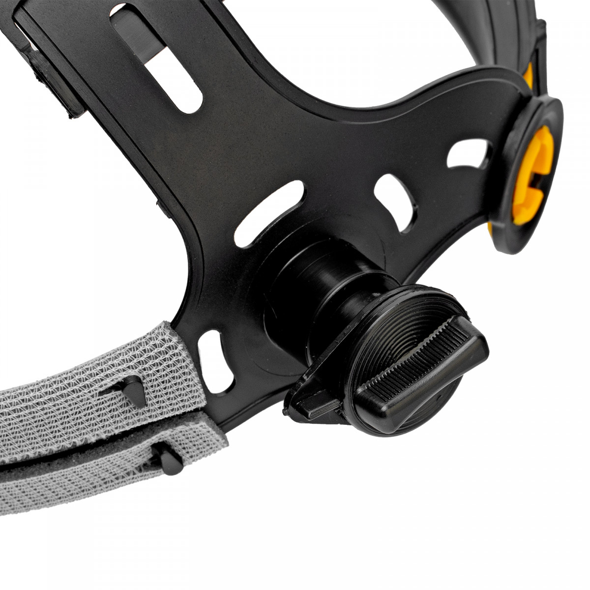 • Плотная фиксация на голове — наголовное крепление с храповиком позволяет плавно подгонять и точно регулировать размер оголовья в диапазоне 54-62 см.