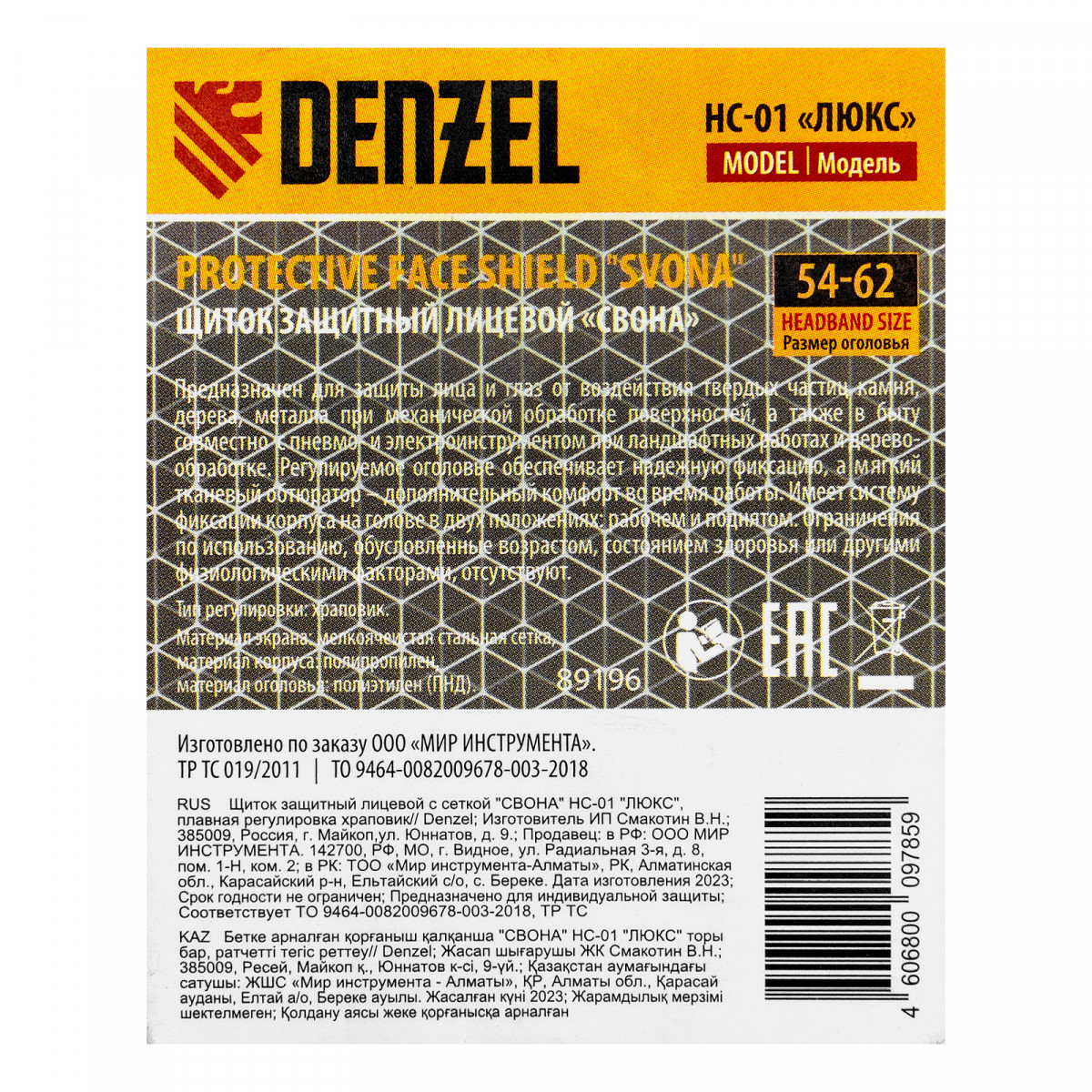 Щиток защитный лицевой с сеткой "СВОНА" НС-01 "ЛЮКС", плавная регулировка храповик Denzel