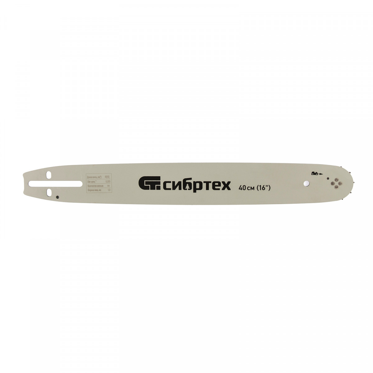 Пильная шина Сибртех 59807 используется в качестве сменной фурнитуры с цепной бензиновой пилой Сибртех ПЦБ-4540. Длина 40 см (16") позволяет использовать шину для работ на дачном участке, в походах, на охоте и рыбалке. На шину надевается цепь с 64 звеньями (шаг 0,325″, паз 1,5 мм), которых достаточно для формирования ровного среза на древесине мягкой и средней твердости.