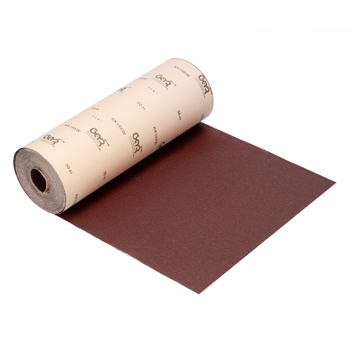 Шкурка на тканевой основе БАЗ 75255 с зернистостью №50, шириной 775 мм и длиной 30 м, применяется для черновой обработки металлических и деревянных поверхностей. Крупнозернистый абразив P 36 с размером частиц 500-630 мкм эффективен для снятия толстого слоя лака, краски, снятия ржавчины, заусенцев, окалины.