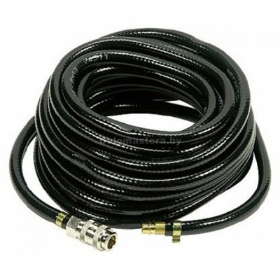 Шланг служит удлинителем между компрессором и рабочим инструментом. Он изготовлен из маслостойкой термопластичной резины, что делает его более гибким и прочным, в отличие от пластикового. Достаточная длина оснастки позволяет осуществлять работы на нужном расстоянии от компрессора. Шланг оснащен фитингами рапид.