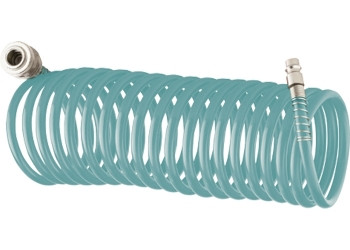Шланг спиральный воздушный изготовлен из сырья BASF. Оснащен быстросъемными соединениями с антикоррозийным покрытием. Используется для соединения компрессора с различными насадками.