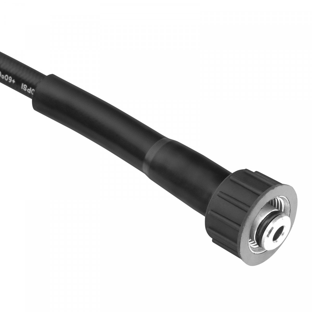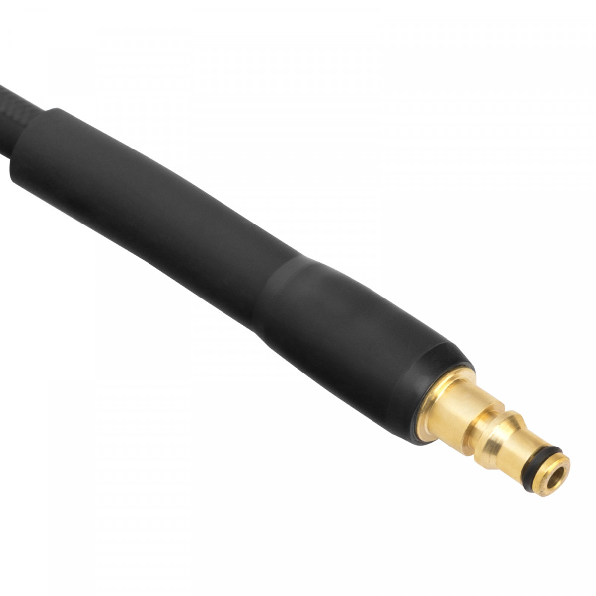 • Прочность — шланг из высококачественной резины в текстильной оплетке выдерживает давление до 16 МПа, а пластиковая окантовка на концах снижает риск появления заломов и трещин.