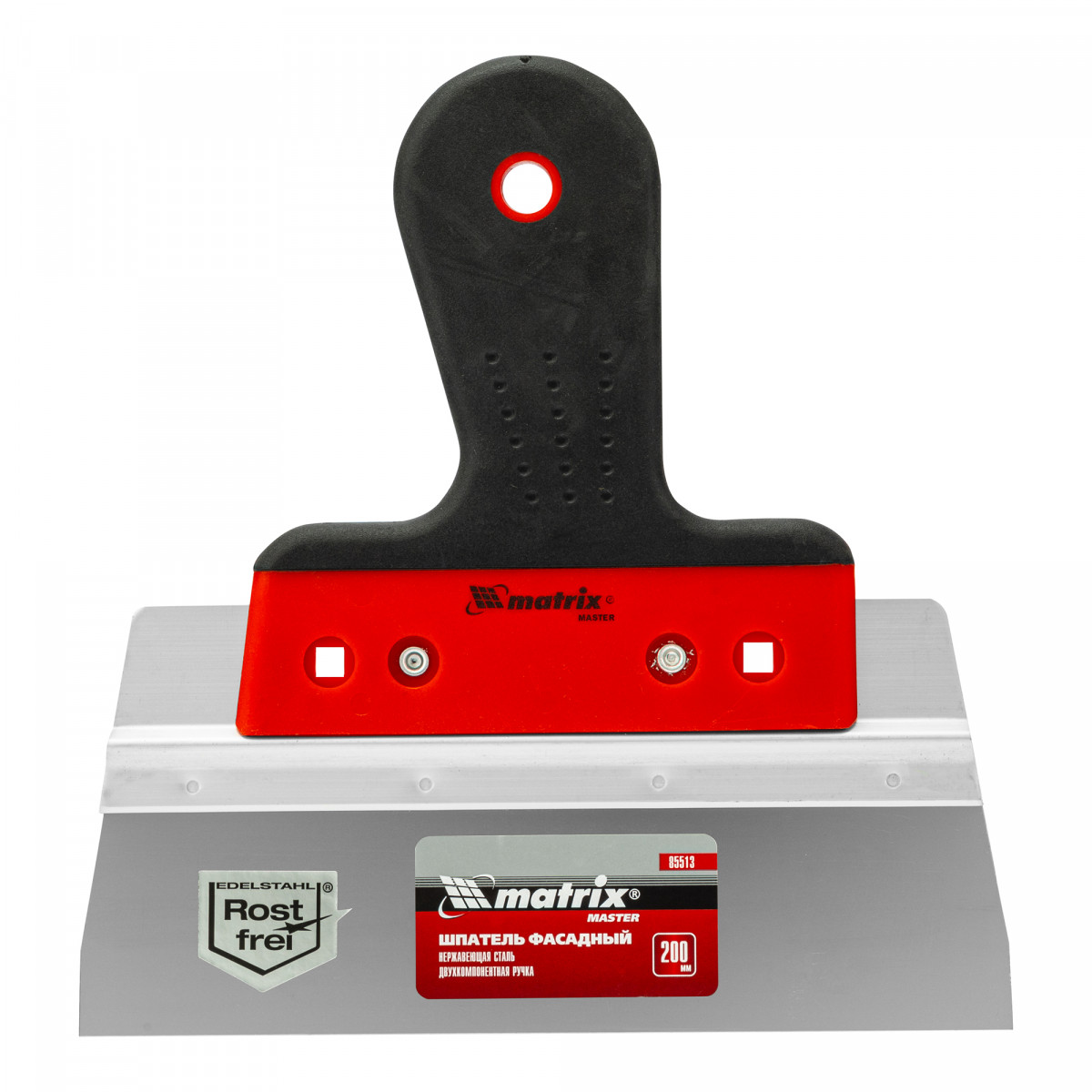 Шпатель фасадный из нержавеющей стали, 200 мм, узкое полотно, двухкомпонентная ручка Matrix
