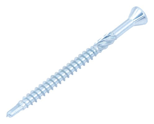 Шуруп с потайной головкой и сверлом для создания крепежных соединений в различных изделиях из древесины.