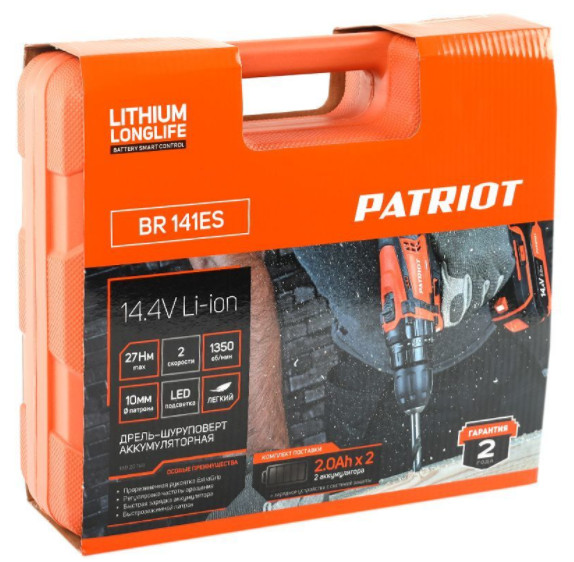 Аккумуляторная дрель-шуруповерт PATRIOT BR 141ES 180201141 - надежный инструмент для отделочных и ремонтных работ в домашних условиях. Позволяет сверлить отверстия в мягких материалах и закручивать крепеж.