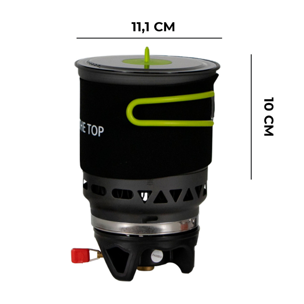 Корпус печи продуман таким образом, что распределяет тепло равномерно по всему дну чаши и защищает пламя от ветра. Благодаря такой технологии 0,5 л воды закипает всего за меньше чем за 2 минуты.