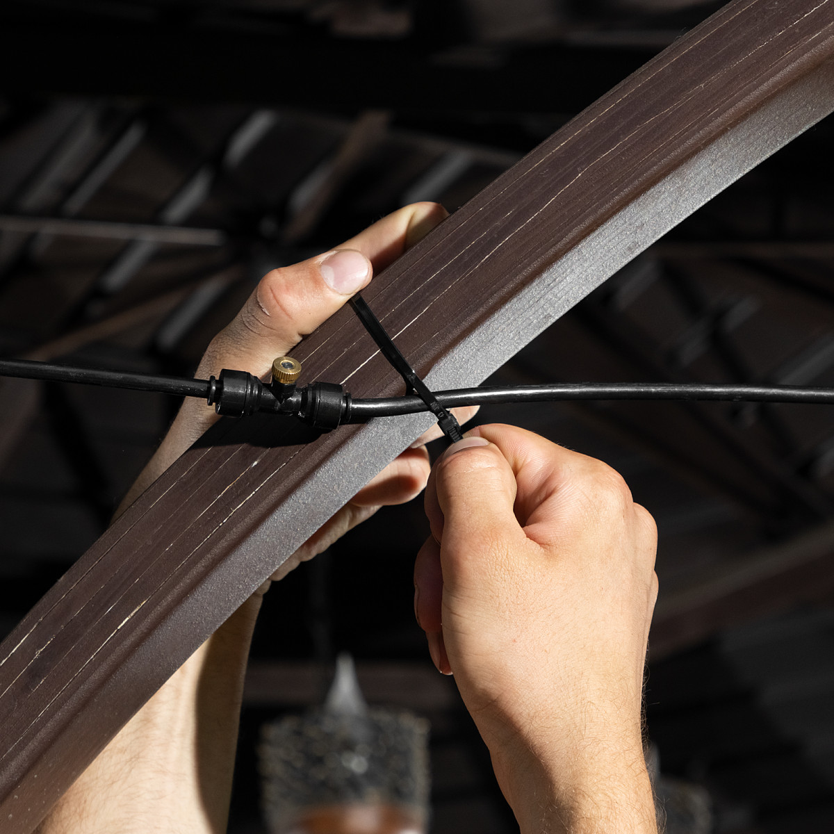 • Быстрый монтаж — элементы системы соединяются при помощи быстросъемных штуцеров, магистраль крепится при помощи кабельных стяжек.
