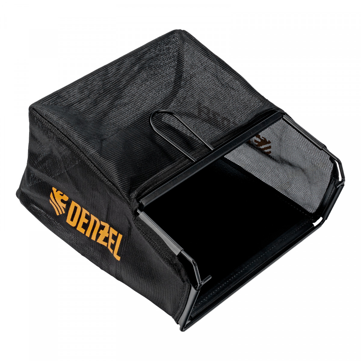 • Вместительный травосборник объемом 30 л — сетчатая ткань позволяет легко отслеживать количество собранной травы и мусора и легко очищается.