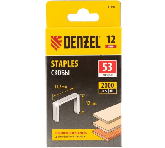 Скобы 12 мм для мебельного степлера тип 53 (2000 шт) Denzel