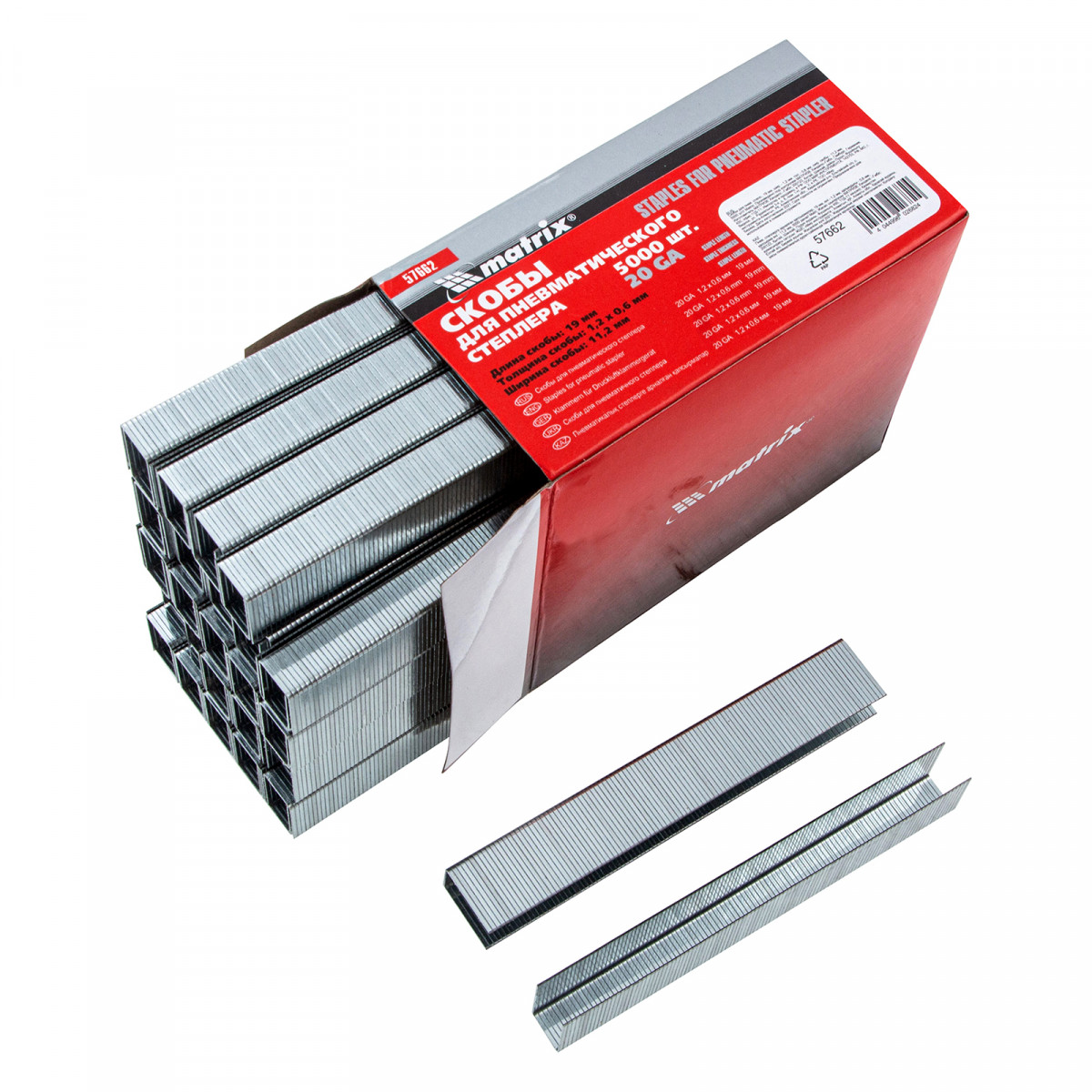 Скобы для пневматического степлера, 19 мм, ширина 1.2 мм, толщина 0.6 мм, ширина скобы 11.2 мм, 5000 шт Matrix