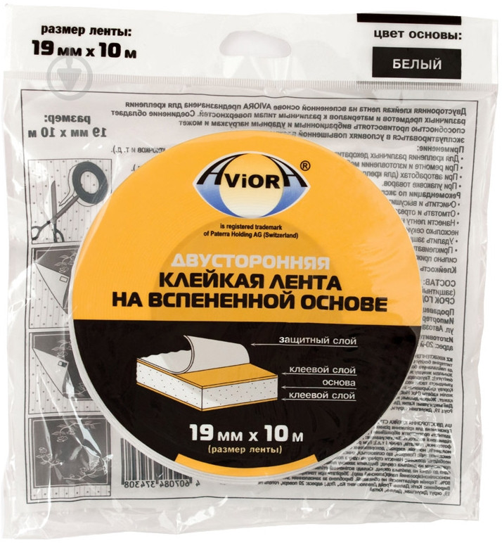 Скотч двухсторонний AVIORA на вспененной основе 19мм*10м, белый