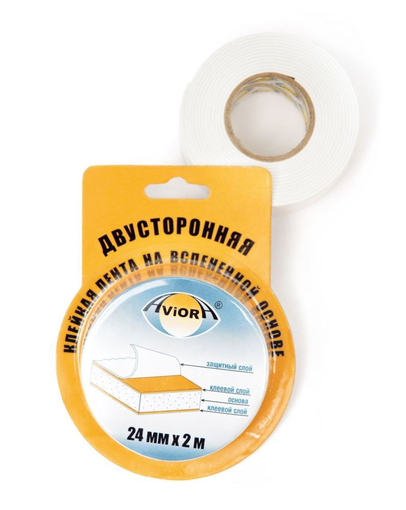 Скотч двухсторонний AVIORA на вспененной основе 24мм*2м сплошная
