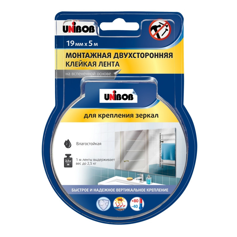 Скотч двухсторонний UNIBOB 19мм*5м вспененная, белый для крепления зеркал