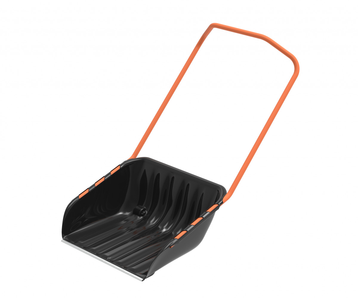 Скребком убирают большие территории. Им быстрее очистить участок, дорогу или подъезд к гаражу, чем лопатой. У скребка есть рёбра, которые приподнимают рабочую кромку над неровностями. Скрепер усилен планкой из аллюминиевого сплава, которая защищает от ударов. Скребок легко катить за собой, как волокушу, потому что у него установлены колёса. Снег не вывалится из скребка, у него высокие борта. Задний борт усилен, в него можно упереться ногой.Изготовлен из морозостойкого и ударопрочного материала. Выдержит Сибирские морозы, и не сломается, если упереться в твёрдые камни. У него эргономичная стальная ручка, скрепер удобно толкать вперед.