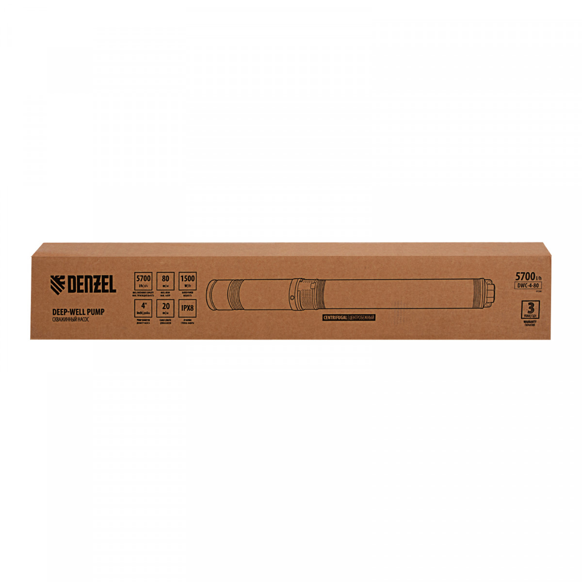 Скважинный насос DWC-4-80, центробежный, диаметр 4", 1500 Вт, 5700 л/ч, напор 80 м Denzel